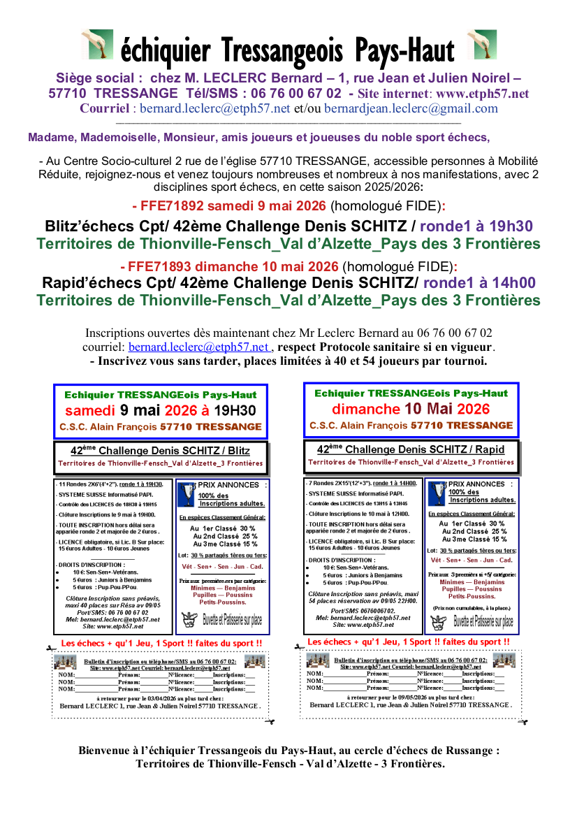 42ème Challenge Denis Schitz - Rapide - Territoires Thionville-Fensch Val d'Alzette