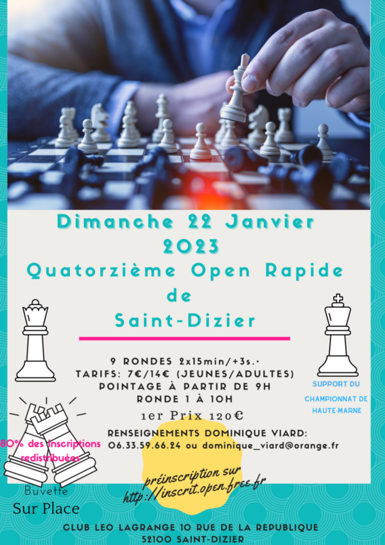 Notre licencié Killian Carroy a participé au 14ème Open rapide de Saint-Dizier ce dimanche 22 janvier.