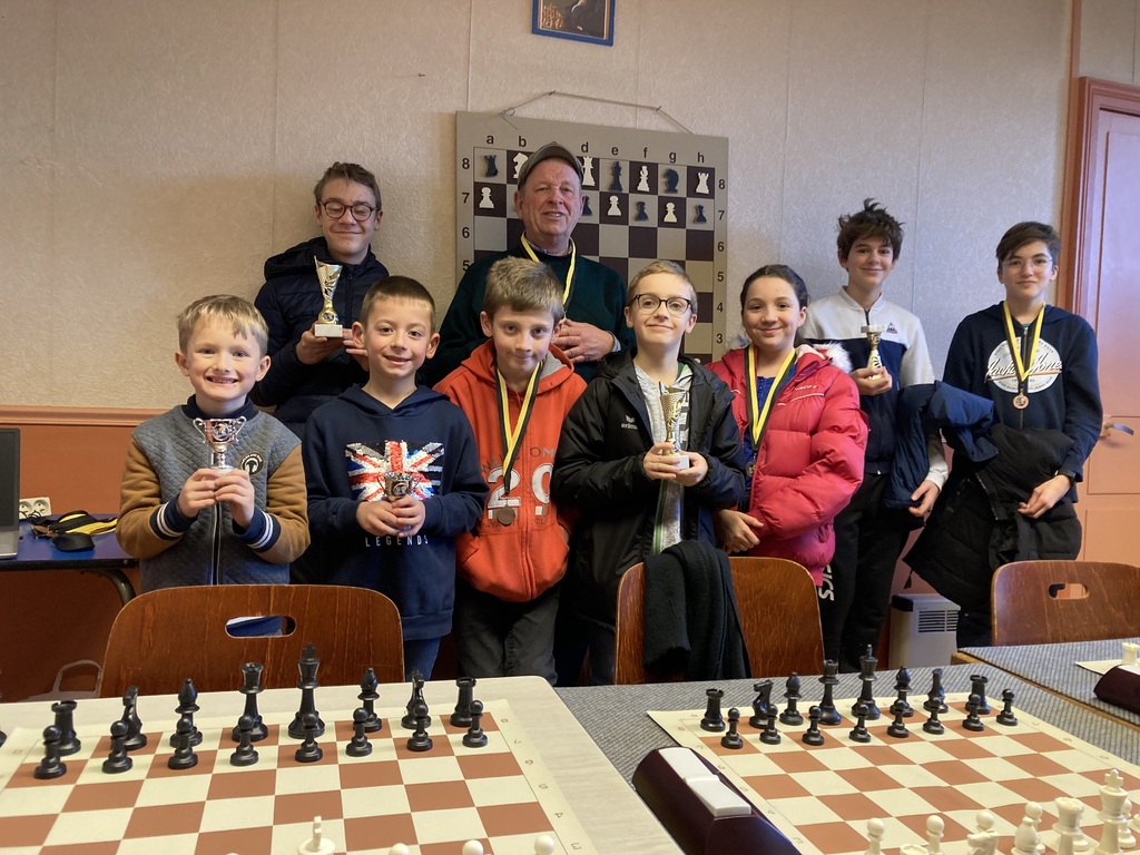 Donatien Noizet gagne le tournoi en ne concédant qu'une seule nullle au second du tournoi : Régis Noizet. Mais l'évènement a été la magnifique troisième place de Timothé Duloquin sans doute motivé par son jour anniversaire. Donatien, le Président et Alban Lambert ont offert leus coupes à Timothé Duloquin, Valentin Duloquin cinquième et Gabriel Macchi sixième. Les deux jeunes petits poussins Arsène Bausseron et Sasha Pillière Ravaux ont été récompensés des petites coupes “mini et mimi”. Les autres joueurs étaient tous médaillés. Merci à Sabrina et Nicolas pour le goûter anniversaire servi à l'issue du tournoi.