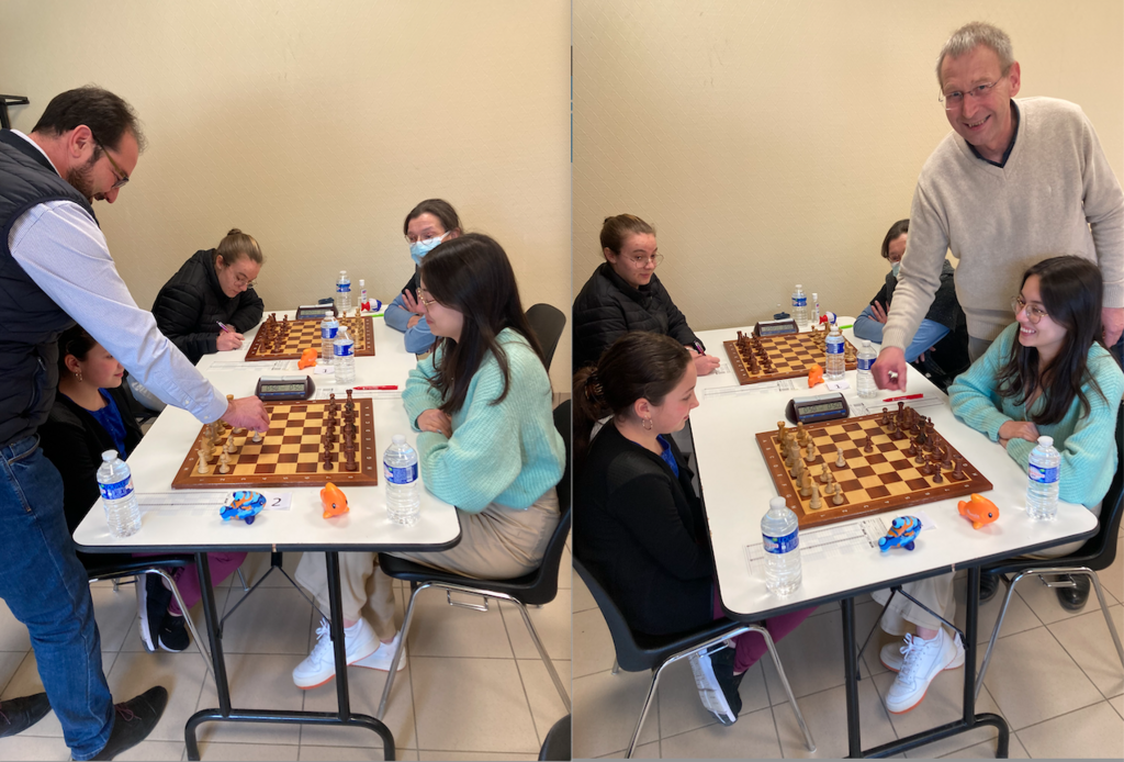 La capitaine de l’équipe Ludivine Petit a montré avec deux parties très serrées face à une adversaire expérimentée que nos joueuses pourront dans un proche avenir rivaliser avec les représentantes du premier club de France Chalons.
