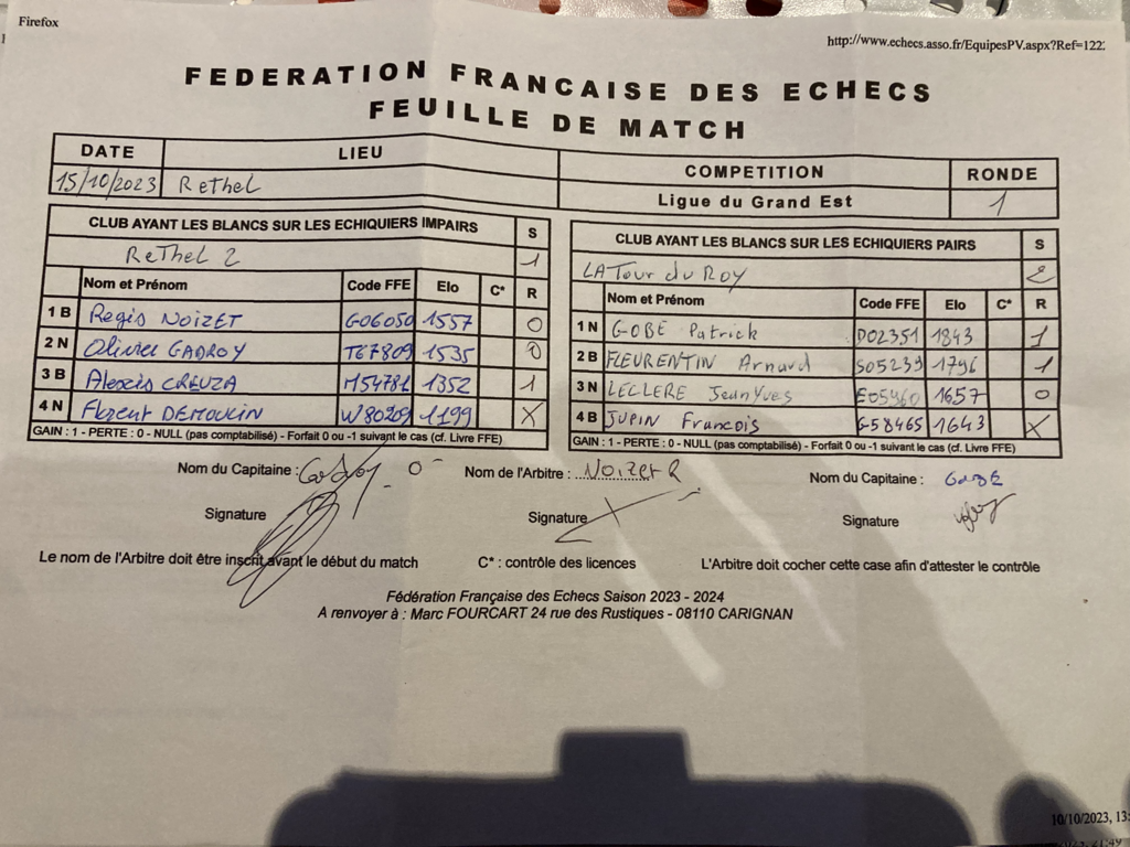 L’équipe Rethel 2 de Regionale affrontait la forte équipe de La Tour du Roy et perd 2 à 1… mais la victoire pour Alexis Creuza et une nulle proposée par Florent Demoulin sont une vraie satisfaction.